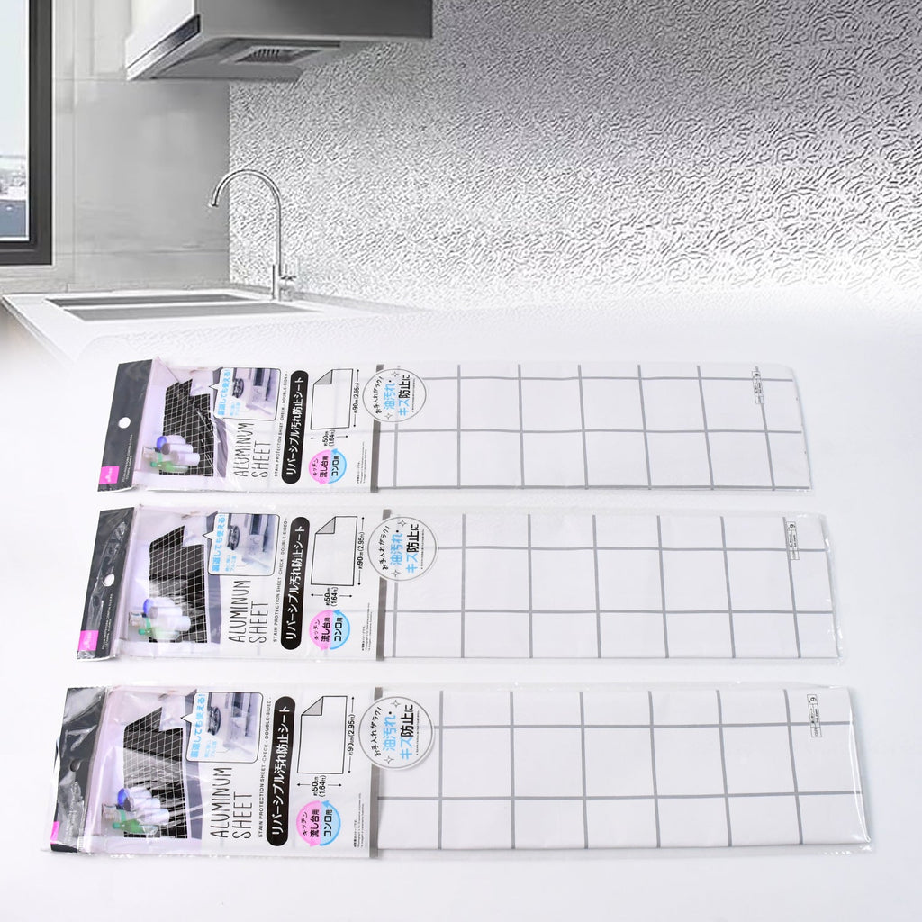 Aluminium Kitchen Wall Sheet, Back splash Wallpaper, Aluminium Without Adhesive Oil-Proof Wall Sheet Contact Paper for Shelf Liner, Drawer Liner, Cabinet Liner (3 Pc / 50x90 Cm)